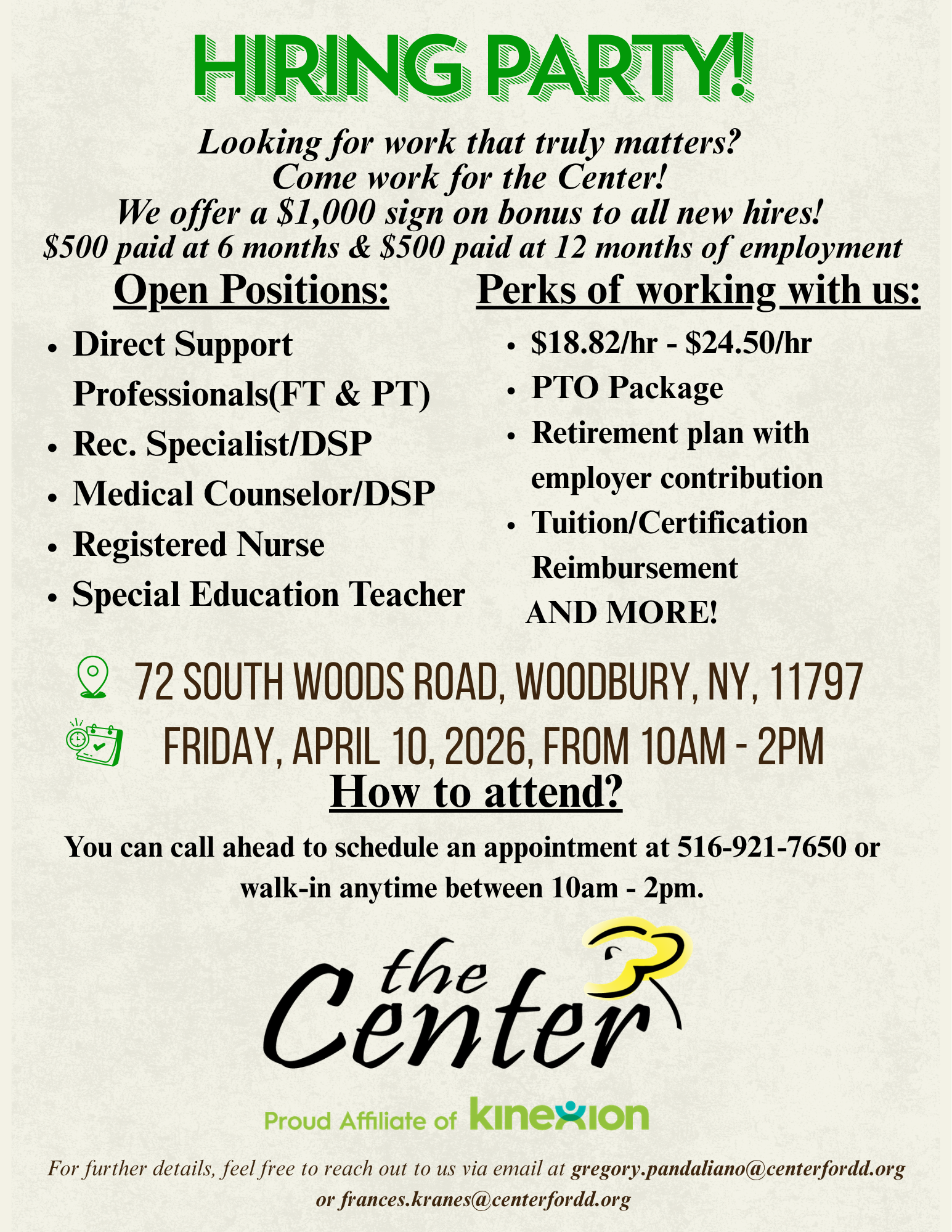 Looking for purpose in what you do? The Center is the perfect place for you!